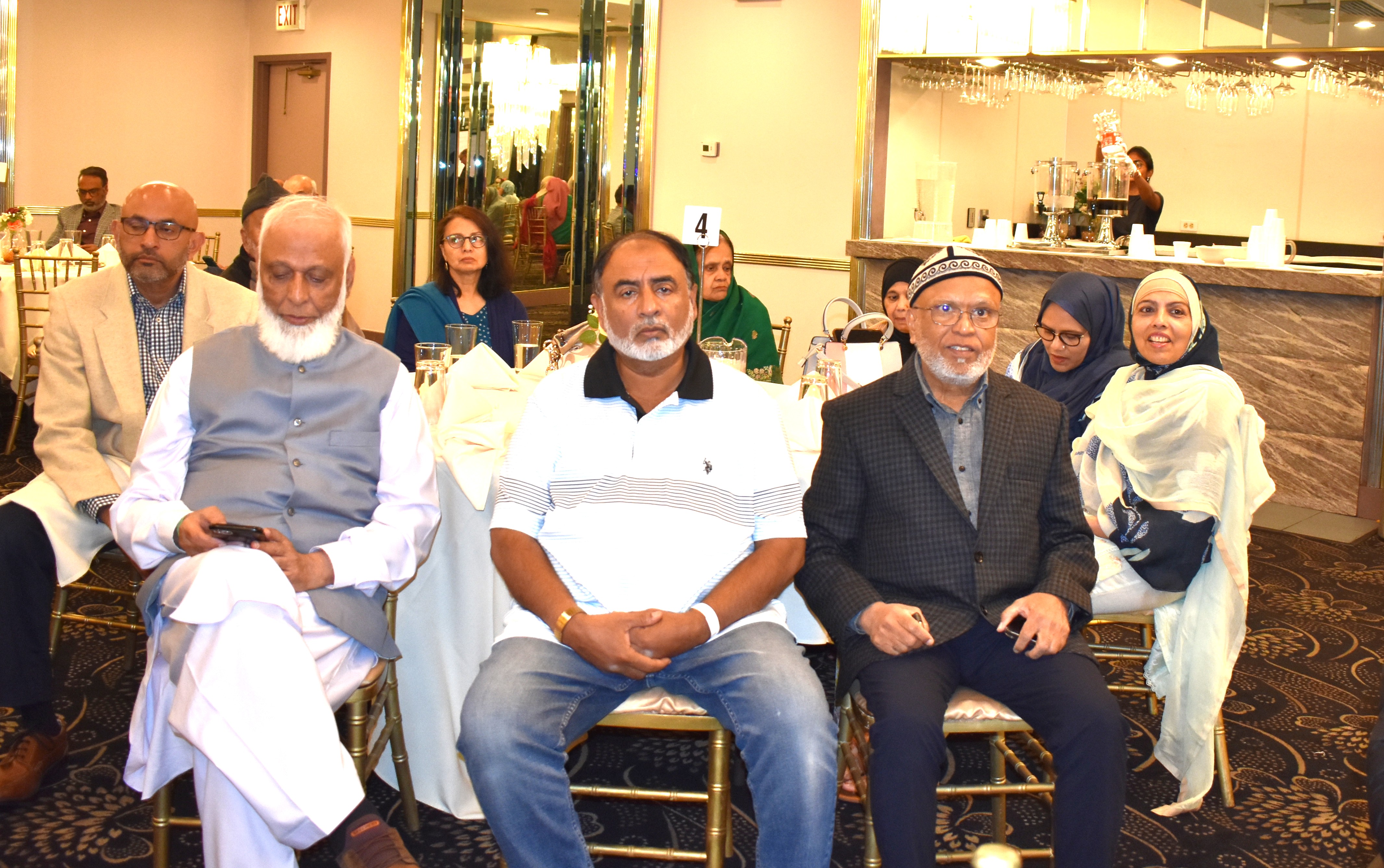 The registration and social hour started at 6:00 pm. Appetizers were served and the dinner started at 6:40. The program started at 7:30 pm with recitation of Qur’an and English translation (verses 1-5, Chapter 96, Al-Alaq ) by Ayrah Sayeed. Dr. Ahmadullah Siddiqi, the program convener, welcomed the guests and shared a brief biography of Sir Syed Ahmad Khan whose birthday we were celebrating. He reminded the audience about the importance of carrying out the legacy of the founder of our Alma mater, the Aligarh Muslim University. This was followed by a power point presentation by the AMUAAGC President Dr. Zafeer Ahmad. Dr. Zafeer reported about Hira Public School completion of educational projects that were funded by our association in 2023-2024. He also noted that currently the association is supporting a project at the Aligarh Modern School in Aligarh, U. P. and another project by Anwarul Uloom School in Bhopal, M. P. for renovation of the school building is under review.