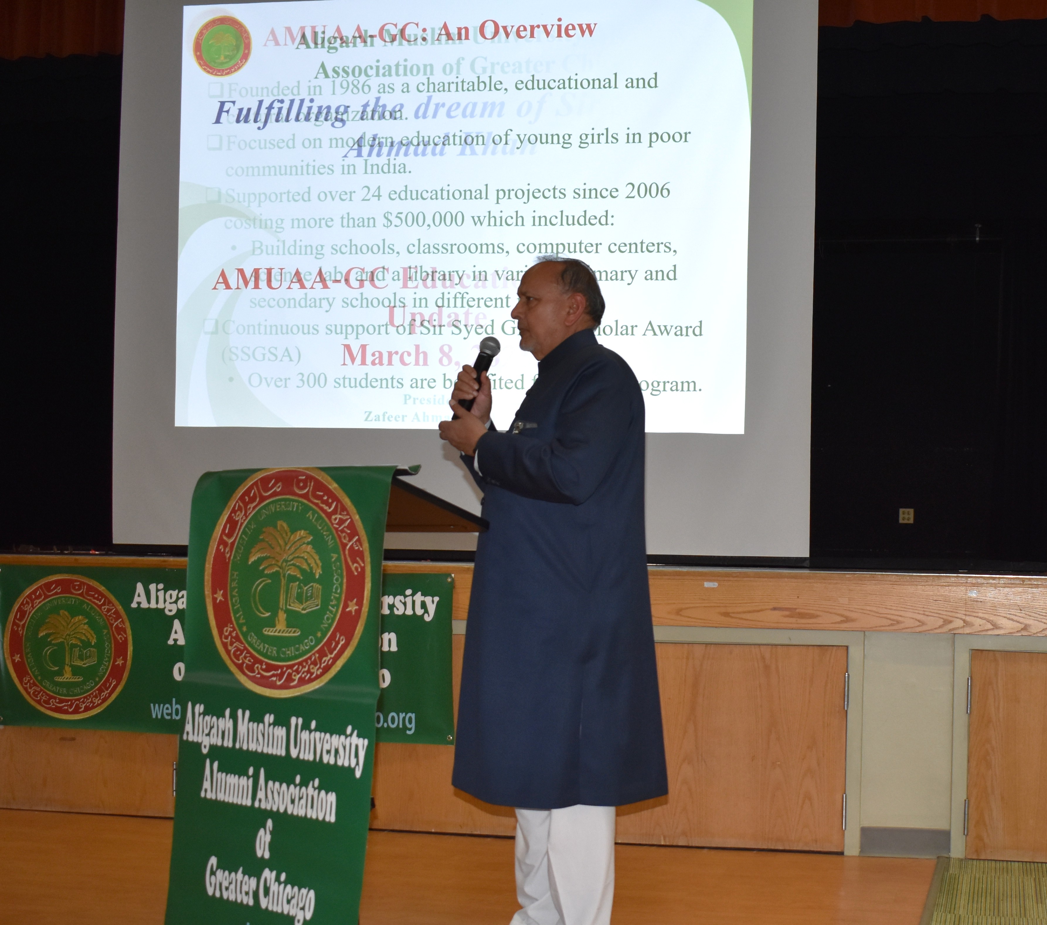 Dr. Zafeer Ahmad, President of AMUAA-GC gave an update about the organization and emphasized how AMUAA-GC is helping in many ways to uplift the socially, economically, and educationally deprived population of India.  Education Projects update was given by Dr. Zafeer Ahmad who presented the completion of Hira Public School Boys Hostel project at a cost of $10,000.00 and Girls Hostel and Warden Residence at Hira Public School project at a cost of $51,000. Another project was completed for the renovation of Anwarul-Uloom, Bhopal, at a cost of $20,000.  An ongoing project was the construction of two classrooms at Aligarh Modern School. The cost for this project was $24,000.00. The total fundraising target to complete these projects was $50,000. We collected approximately $31,000 at the end of this program, however, some people continued to donate.