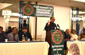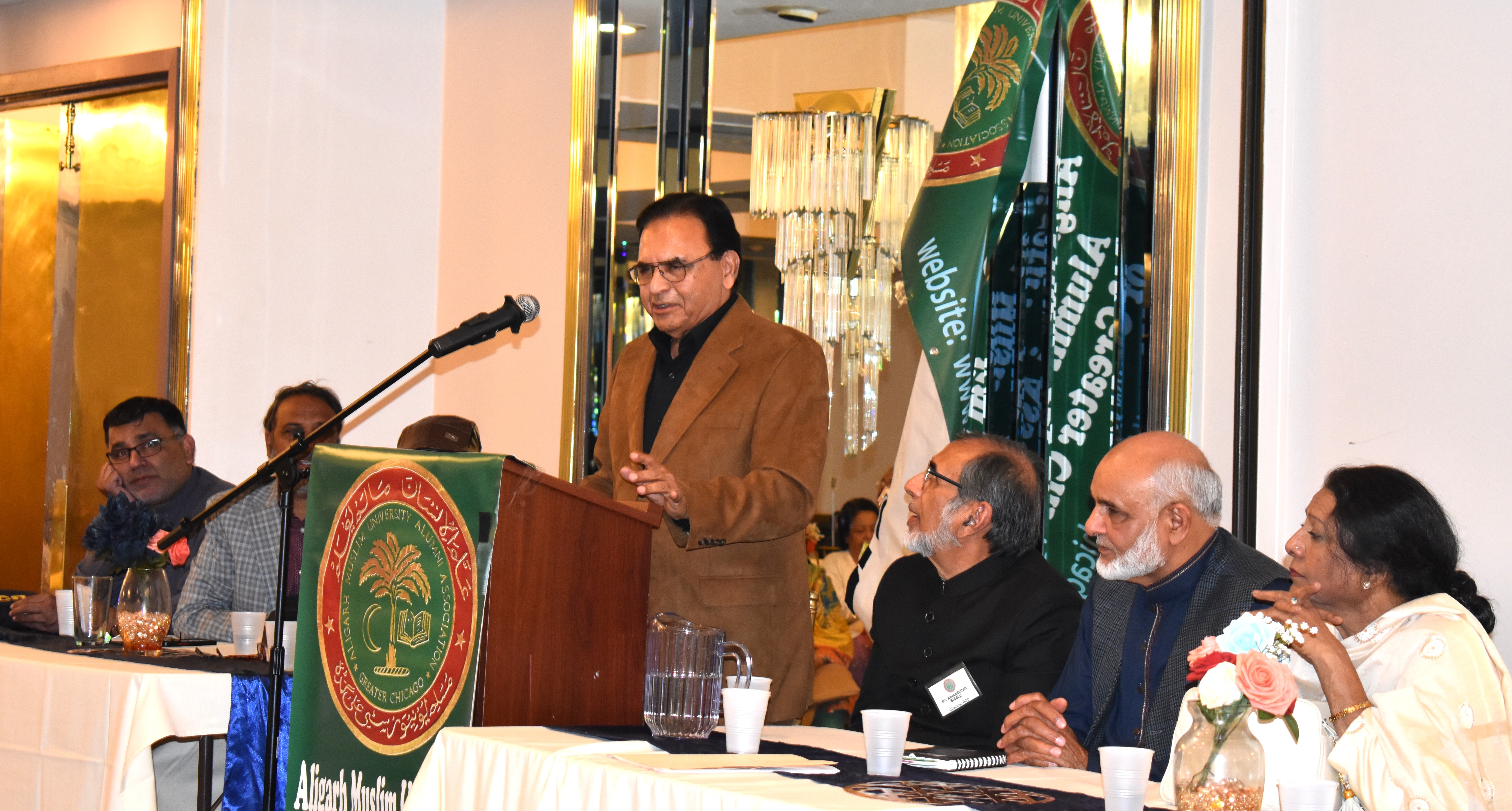 The registration and social hour started at 6:00 pm. Appetizers were served and the dinner started at 6:40. The program started at 7:30 pm with recitation of Qur’an and English translation (verses 1-5, Chapter 96, Al-Alaq ) by Ayrah Sayeed. Dr. Ahmadullah Siddiqi, the program convener, welcomed the guests and shared a brief biography of Sir Syed Ahmad Khan whose birthday we were celebrating. He reminded the audience about the importance of carrying out the legacy of the founder of our Alma mater, the Aligarh Muslim University. This was followed by a power point presentation by the AMUAAGC President Dr. Zafeer Ahmad. Dr. Zafeer reported about Hira Public School completion of educational projects that were funded by our association in 2023-2024. He also noted that currently the association is supporting a project at the Aligarh Modern School in Aligarh, U. P. and another project by Anwarul Uloom School in Bhopal, M. P. for renovation of the school building is under review.
