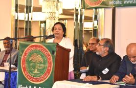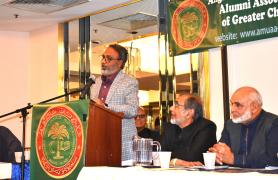 Awards were presented by the President, Dr. Zafeer Ahmad and the Board Chair, Dr. Ahmadullah Siddiqi to the keynote speaker, Dr. Masood Akhtar and to Dr. Asefa Ansari, one of the senior most members of AMUAAGC who has served as Secretary and the Vice President of the association. Dr. Asefa was recognized for her services to the community and the association. The award ceremony was followed by AMU Tarana that was presented under the leadership of Dr. Shakil Khan along with many members. The Sir Syed Day Program came to an end with a vote of thanks by the association’s Secretary, Dr. Mohammad Fazle Alam.